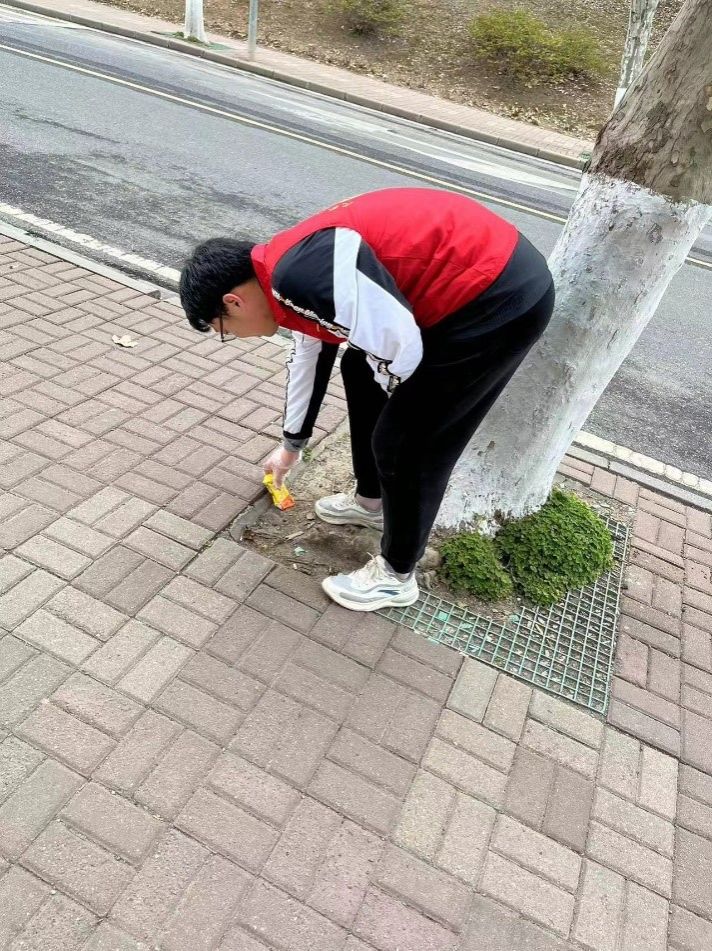早上7点半,志愿者们在笃行楼下集合,崔灏灏老师的带领同学们沿着学校主干道前行,并捡拾道路两旁的烟头,水果壳,纸巾和塑料袋等垃圾。“小青桐“志愿者们用手捡起一个个垃圾,并扔到垃圾桶中,为全校师生营造美丽校园环境,用自己的实际行动践行雷锋精神。